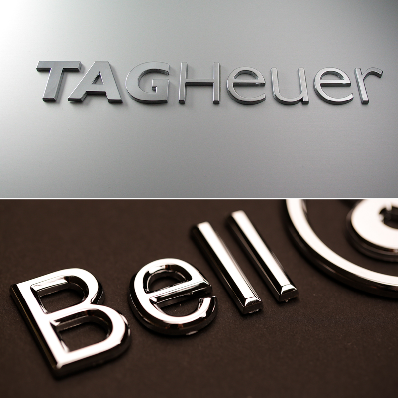Metallisierte oder verchromte Kunststoff-Spritzguss-Schriftzüge sieht man täglich am Heck von Fahrzeugen. Wir bieten diese Option nicht nur für den Automotive-Bereich